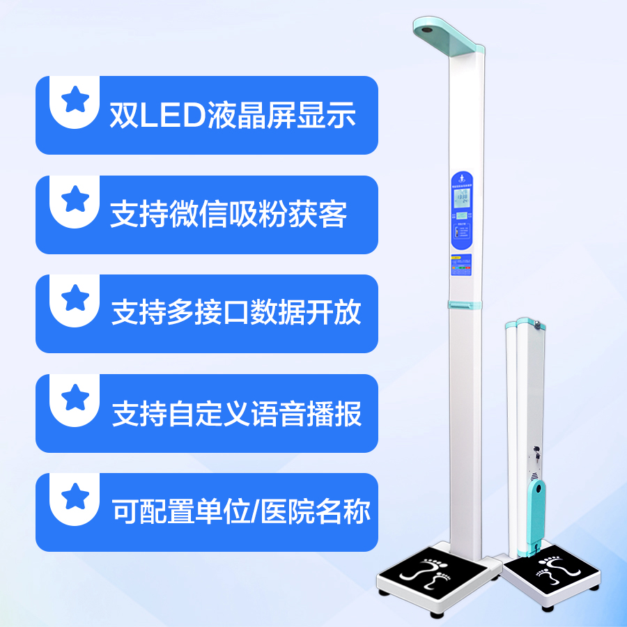 上禾SH-201智能雙屏身高體重測量儀,適合90%以上的春季體檢使用場景,雙屏顯示、可折疊、可設置您的專屬宣傳語、全自動測量、語音播報、數(shù)據(jù)傳輸?shù)龋胍墓δ?,它都有?/p>